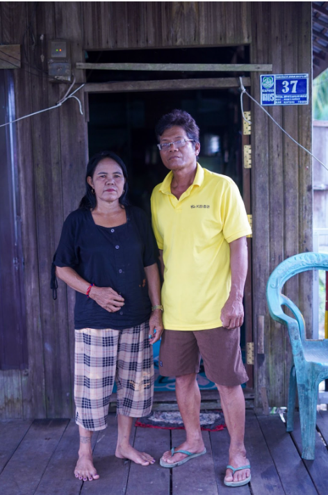 Dijah dan suaminya, Tito bergantian merontokan buah sawit dari tandannya. Setiap butir yang terlepas jadi harapan baru untuk hari esok.